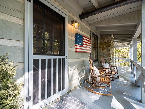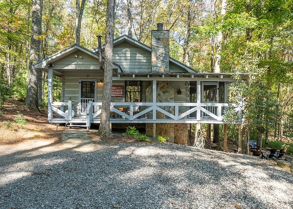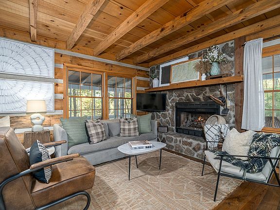 Escape to this charming, fully-furnished* log cabin getaway in the heart of the desirable Aska Adventure Area in Blue Ridge, offering immediate access to incredible hiking, biking trails, and nearby trout streams. This two-bedroom, one-bath retreat features a spacious open-concept living area and eat-in kitchen, complemented by a cozy wood-burning stone fireplace and a wood-burning stove in the kitchen. Enjoy the outdoors on the expansive wraparound deck, complete with a comfortable screened-in porch and a rocking chair front porch perfect for relaxation. The property is designed for mountain living with a private hot tub, a dedicated fire pit area, and deeded access to the famous Toccoa River. Recent major upgrades ensure peace of mind, including a brand new metal roof and a whole-house Generac generator, both installed in 2024. A unique bonus is the detached 2-car garage, which has been converted into an excellent den or game room, providing extra living space. The cabin also features a hall closet laundry room, and an unfinished basement for storage. *This luxury property is being sold fully furnished, with the exception of specific personal and staging items noted in the disclosure. This cabin makes the perfect investment as a short-term rental or a permanent residence. Come and explore the cozy cabin of your dreams!