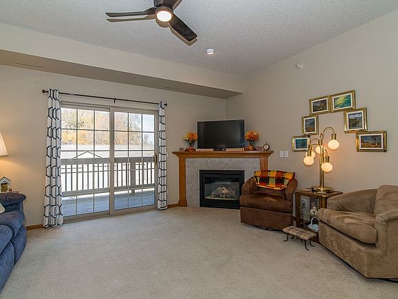Immediate Possession Available! The right home to fit your lifestyle. This middle unit, 2nd-floor condo has a secure entrance and spacious layout in a peaceful neighborhood. The living room is carpeted and includes a gas fireplace and slider to the deck. There are 2 bedrooms, 2 full baths, and a laundry area. The kitchen features tile floors, laminate counters, ceramic tiled backsplash, and breakfast bar. Appliances stay with the home. The master bedroom suite includes a walk-in closet, deck access, and an attached shower/tub combination. This condo includes an oversized one stall garage that allows space for a workbench if desired. There is additional parking in the community lot. Low HOA fees of $140 a month. No thru traffic with the circular drive and shared green space. Next door to St. Andrew's Golf Course. Call or email today for a private showing.