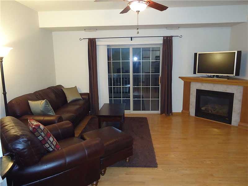 Exceptional upper level end unit condo in a great location overlooking the large common area courtyard. Features include laminate wood flooring in the living, kitchen and dining areas, corner gas fireplace, and full appliance package complete with stainless steel in the kitchen. You will also appreciate the large deck accessible from both the living room and master bedroom along with 9' ceilings, breakfast bar, spacious room sizes and an open floor plan. Detached garage plus the current owner leases a second garage on-site that can be transferred to the buyer. The building features an elevator and is also pet friendly. Wonderful setting backing up to St Andrews golf course yet close to I-380, Target, Wal Mart and an abundance of restaurants. A pleasure to show!