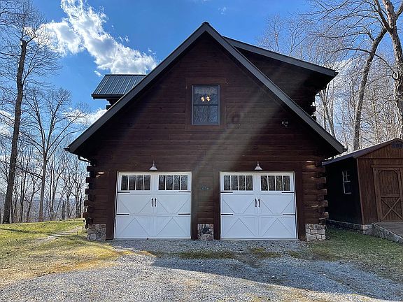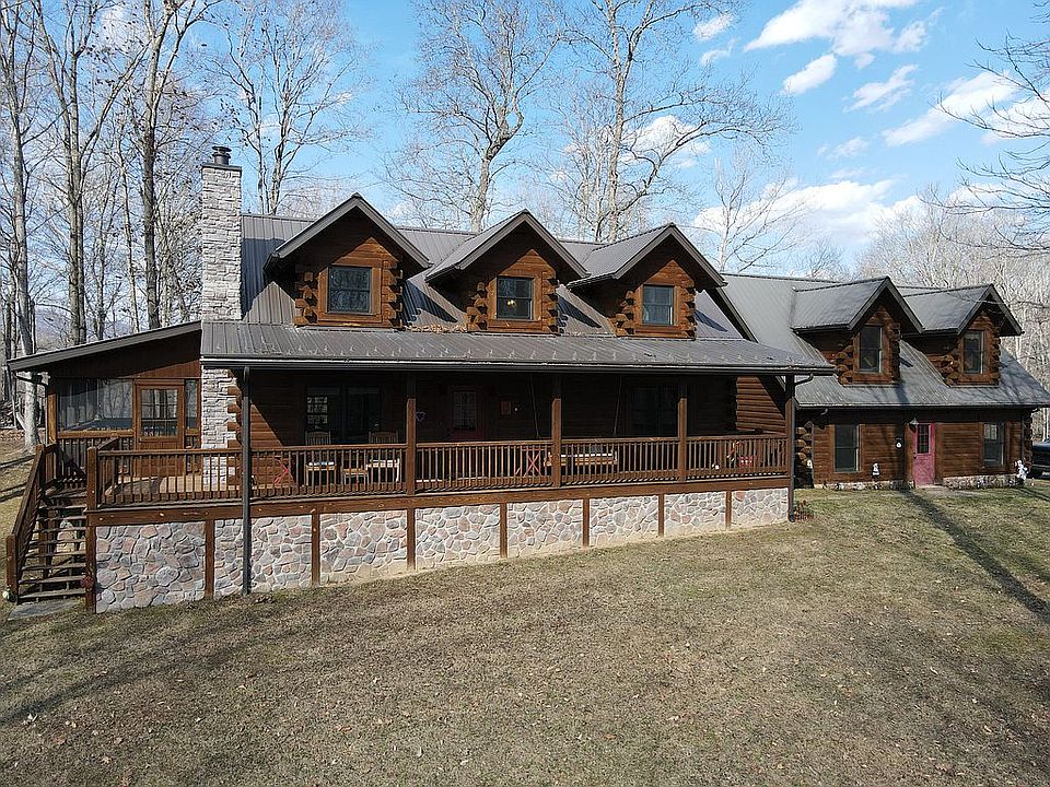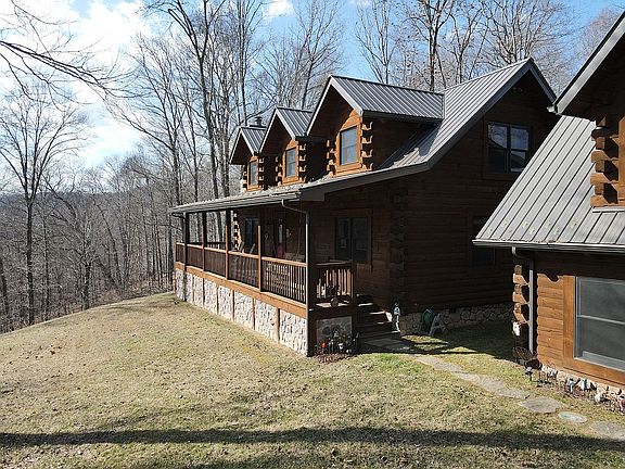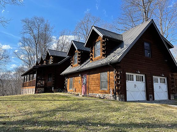Beautiful 2010 Appalachian Log Home with 2690 sq ft offering 4 bedrooms, 3.5 bath and large covered porch overlooking the serene peaceful wildlife filled woodlands surrounding this one of a kind property. Feel like your a million miles away with the natural log inside walls and the stone wood burning fireplace. Detached log garage with a 24x30 nice apartment above the main garage.