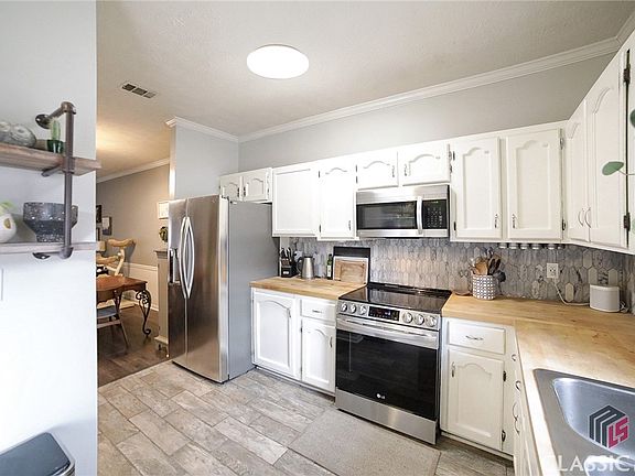 **Looking to buy down points? Need a bit more cash to close? Seller offering $5K for BUYER CLOSING COSTS!!** Limited Opportunity in West Athens’ Sweetwater Plantation - Presenting an UPDATED, SINGLE-LEVEL gem with unobstructed water views. Truly hard-to-find, this ranch-style end-unit serves spectacular upgrades and standout features that simply set it apart. Perfectly maintained, this mint-condition home boasts an easy-living concept reimagined with warm, luxury vinyl plank floors that compliments the cool neutral paint palette, features updated light fixtures and complimenting hardware. This easy-living plan welcomes you with the inviting foyer lined with storage closets and immediate access to the sunlit kitchen. Highlighted with compelling finishings, this updated culinary space offers butchers block countertops, white cabinets accented by custom-tile backsplash, upgraded “faux wood” tile plank floors, and complete with a stainless appliance package. The kitchen effortlessly transitions to the dining room and spacious living room, creating a versatile layout for entertaining, as well as everyday comfortable living. Providing an extra touch of charm, the masonry fireplace commands the room, offers the perfect ambiance and adds warmth on those frigid Winter days. Spanning the left side of the home are the cozy bedrooms and baths, including the laundry closet appointed with sliding-barn-doors, for added convenience. Boasting your own private retreat, the owner’s suite is upgraded with a captivating bay window that allows natural light to set the room aglow, features a spacious closet, and a private ensuite full bath. The secondary bedroom also offers plenty of space, multiple closets and a ceiling fan light fixtures. Boldly redesigned with updated paint and wallpaper accent, the secondary full bath is truly a vibe of its own! This unparalleled find continues to impress with a rare feature in the neighborhood - a fenced rear yard. Enjoy privacy on the rear patio and a quaint yard encapsulated by fencing for your fur babies. Not many units are situated overlooking the neighborhood pond, and #235 made the list. Additionally, the neighborhood HOA includes trails around the pond, sidewalks, street lighting, swimming pool, trash pick-up and tennis courts just around the corner, - Not to mention the extremely low maintenance setting. Discover the epitome of convenience with this in-town location. Just minutes from Loop 10, Highway 78 and provides direct access to Atlanta Hwy., convenience is an understatement. Whether you’re looking for an updated move-in ready condo or expanding your rental portfolio, this unmatched single-level offers an ideal blend of a convenient location, low maintenance living, and condition that you surely do not want to miss!