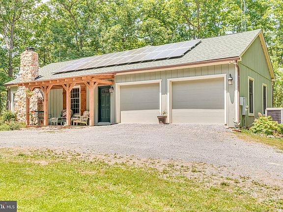 Who is ready to escape to a beautiful ranch home on 24 acres? Brand new roof with architectural shingles installed June 2020, 22 solar panels, Hughes internet, Direct TV. Master bedroom on main level with master bathroom. Master bathroom has a walk-in tub and shower stall. The other 2 main level bedrooms have their own attached full baths. The living room has built ins, wood fireplace insert, views galore, and leads to one of the 3 covered porches. There is an electric stove in the kitchen but can be converted to gas as a gas line is installed. The unfinished basement has many possibilities with rough-in plumbing and an existing half bath. There is a free standing soapstone wood stove in the basement. The owner has thought of it all - solar panels, battery room, new roof, 2 water heaters, back up propane (free standing heater in basement and dining room.) The well pump was replaced in 2017. There is a new well pressure tank that was purchased in 2017 but not installed. Enjoy those quiet mornings and evenings on the 3 covered porches - front, side and back! There is an oversized detached garage that was built in 2016 with electric and ample storage. The propery has a creek, waterfall, and access to the Cacapon River. Located only 24 miles from Winchester, VA or 10 miles to Wardensville, WV, this property has it all! Stay tuned for video!