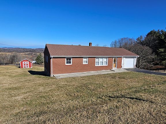Charming brick ranch on 2.75 acres offering beautiful views and peaceful country living! This one-level home features 3 bedrooms and 1 bath on the main level with hardwood and laminate flooring. The basement includes an additional bath and is ready to be finished to suit your needs, providing expansion potential. Enjoy the efficiency of a heat pump, plus outbuildings and a 1-car garage for extra storage or workspace. Situated on a really nice lot, this property is conveniently located just minutes from the Blue Ridge Parkway, the Blue Ridge Music Center, Galax, and the North Carolina line—Nice place for those seeking both tranquility and easy access to local attractions. Call Today!