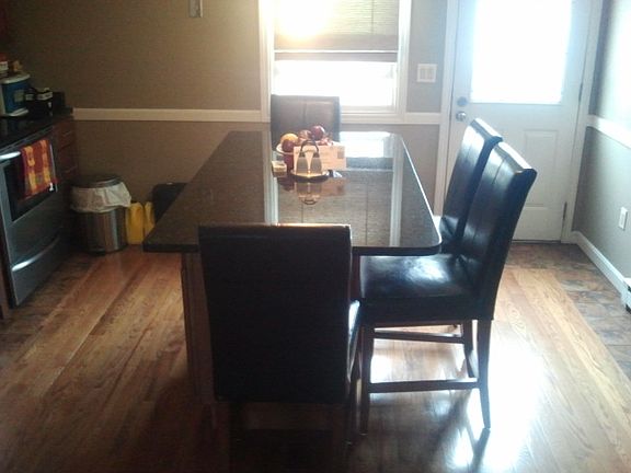 Renting two floors, with 2 bedroom, 1 and a half bath, living room, nice kitchen, granite table top, all hardwood floors, newly renovated. Two specious bedroom, small laundry area, 20x10 back porch for summer BBQ, table and chairs included, front porch for morning coffee, nice and clean. All furnished including large TV in LR. First, last and $750 security deposit. No pets. Credit and background check is required. Parking for one car and plenty on street parking. Electric heat, and hot water to be paid by tenant. E-mail for more info. At this time we can not accept section 8.Additional payment of electric/heat to be paid by tenant