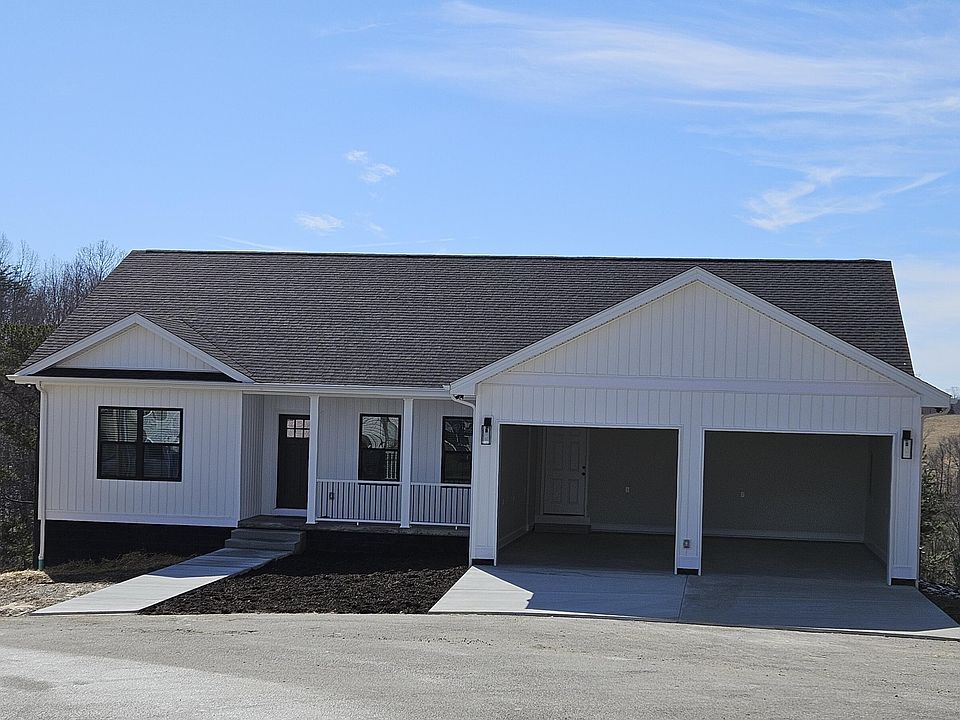 Stunning New Construction in Elkhorn Estates Subdivision located in the Cold Hill Area of London, Ky. Contemporary board and batten vinyl siding with beautiful black windows and garage doors. Customized mud room area with storage galore. Spacious open-concept layout with front and back covered porches. Modern kitchen with 7ft island, quartz countertops, pantry and stainless steel appliances. Luxurious primary suite with walk-in closet, another small one for overflow and ensuite with double vanity and custom tile shower. Over sized laundry room and hall pantry. Craw space has gravel, extensive storage potential, mower size garage door and concrete pad for easy access. All on large lot at the end of cul-de-sac. Join the many happy homeowners in the ideal location in the county but minutes from downtown, interstate, shopping, and hospital!! AGENT/OWNER