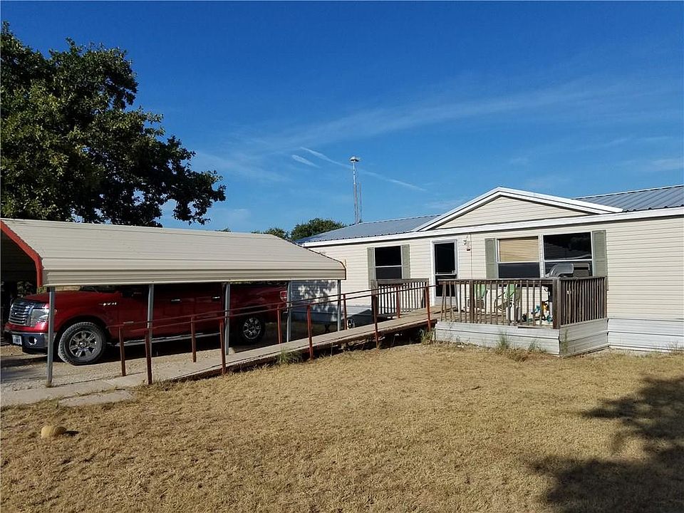 4 Bedroom 2 bath double wide with about 17 plus acres, cross fenced and perimeter fence in goat wire. Also fenced around the house. two carports and one storage type building. Several large oak trees along with mesquite trees. Very Private.