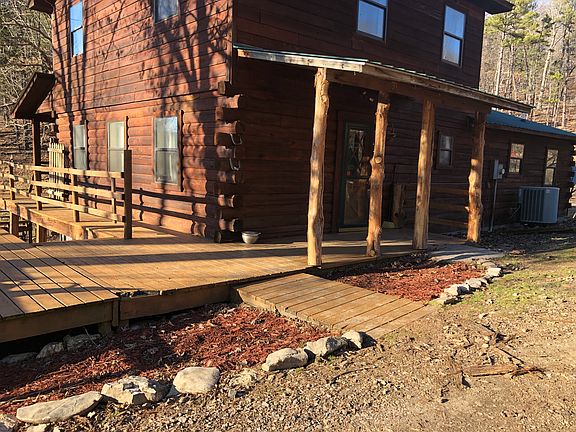 Roads on property have been re-done and are big enough to drive a semi down. A Big Deck wraps around part of the house and has been re-stained and sealed making an excellent spot to entertain guest. Property also features two large outside fire pits perfect for company. One is over looking the entire mountain side and has the most beautiful view at sunset. As soon as you walk in the door you are greeted by a stunning black walnut bar and eye catching white tile. Living area, kitchen, and bar area are all open space and gives the room a big open feel. Master bedroom is oversized and has a huge walk-in closet, connected to a large bathroom. Stairs have been redone and lead up to two bedrooms and one remodeled bath.
