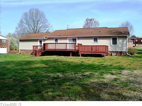 Eligible for 100% USDA financing for qualified buyers! One level home on half acre lot in a established neighborhood! Rocking chair front porch! Living room with gas log fireplace, New Hvac with transferable warranty, Tile floors in kitchen and baths, recently painted two tier deck with hot tub, wired storage building, deep garage for added storage, Low Davidson County taxes! Located minutes from Winston Salem & Lexington, Welcome area