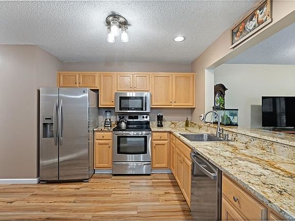 Your new home has arrived! Welcome to this bright and inviting tri-level townhome at Elmcrest where there's nothing left to do but move in! Beautifully updated, this unit features a renovated, eat-in kitchen with stainless steel appliances, granite counters, pantry, and recessed lighting. The oversized pass-through window offers seating at the breakfast bar, which flows right into the living room and dining room areas, perfect for entertaining! Upstairs, the expansive bedroom with walk-in closet can easily accommodate king-sized furniture. The bonus loft space would make the perfect den, office, or second bedroom! The two updated bathrooms complete the renovation on both levels. Fresh paint and all new luxury vinyl plank flooring sparkle throughout! The basement offers amazing storage space or the option for a future rec room or bedroom suite. Enjoy the summer breeze from the comfort of your freshly-stained back deck or hang out at the sparkling in-ground pool in the sunshine!