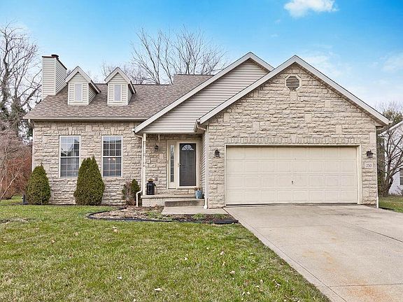 Welcome HOME to this LOVELY 2 story home in a cul-de-sac with a stone front! Upon entering you will notice a large vaulted great room with wood laminate flooring, freshly painted, and gas log fireplace. The open kitchen features ceiling height cabinets, butcher block counters and SS appliances. The first floor also has a PRIMARY Bedroom w/Closet & PRIVATE Bath! Upstairs has 2 additional bedrooms with LARGE walk-in closets and the second full bathroom. The lower level provides a rec room/flex space and a full laundry room area w/extra storage. New Hot Water Tank & Deck!