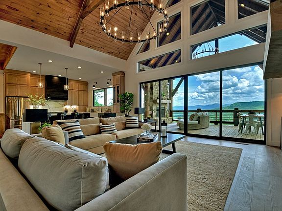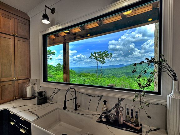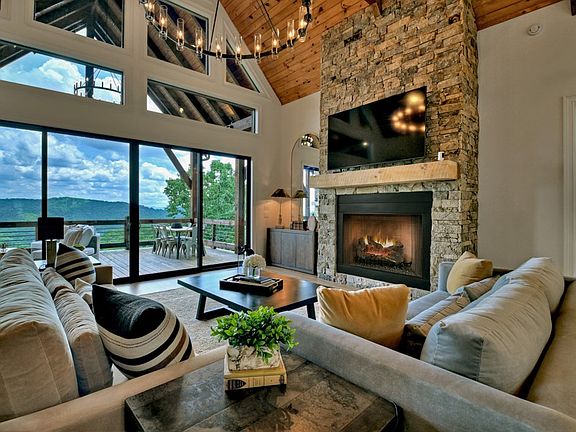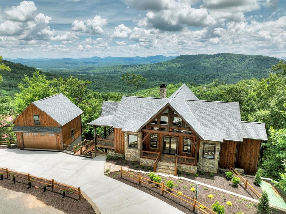 The Pinnacle of Mountain Living w/ Million Dollar views of ^^layered mountain ranges & of Lake Blue Ridge^^ located in the heart of the Aska Adventure Area, the most highly sought after area in N. GA. Conveniently located less than 10 min from downtown Blue Ridge as well as Lake Blue Ridge public access & marina + less than 5 min. to the Toccoa River. All paved road access including concrete circular driveway highlighted by professional landscape design. New Construction modern rustic lodge style home featuring 3BR's, 3.5BA's w/ lots of outdoor living spaces including wrap around porches & decks for 2 levels. Main level and terrace level features “party porch” w/ outdoor FP. Custom finishes throughout including upgraded lighting, walk in tile showers, floor to ceiling marble tile in master bath, custom exposed beam work, gas log FP in GR & in terrace den, rollout Marvin windows, & more. This open floor plan design was perfectly designed with this lot in mind offering a view from every room from the moment you walk in the door. Soaring cathedral ceilings, lots of fixed glass windows including a “wall of glass” overlooking this spectacular view & custom wood floors add to the warmth of the GR. Gourmet chef's kitchen w/ huge working island all featuring quartz countertops & island featuring waterfall edges countertop. Terrace level features 2 additional ensuites, w/ Rec Room/Den & wet bar perfect for entertaining. Detached 2 car garage w/ bonus room that could be finished into office, recreation rm, or finished living quarters offers additional future square footage
