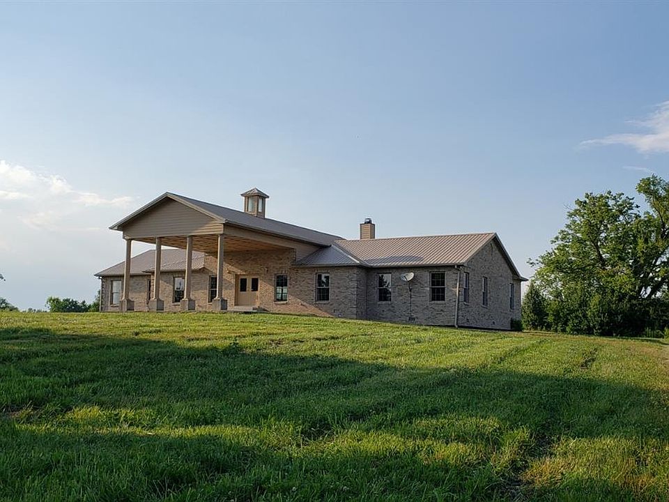Perfect opportunity to own 22+ acres in Woodford County. 8 yr old, all brick, approx 3400 sq ft Ranch home on a basement w/split bedroom plan. All beds except 1 has a full bath. The master is enormous, very large bath, double vanity, his & her walk in closet, separate tub & shower. There is a bar area right outside of master. The large great room is perfect for entertaining large crowds with kitchen and Bar on each side. Kitchen has soft close cabinets, granite counters, Amazing Large walk in pantry, home office/trophy room, a Cloak room with 2 coat closets & half bath. Home is sold As Is w/1 yr Basic home warranty. Basement is not finished, contains a garage & unfinished room. Home has so many possibilities, basically it has 3 masters, perfect for entertaining.