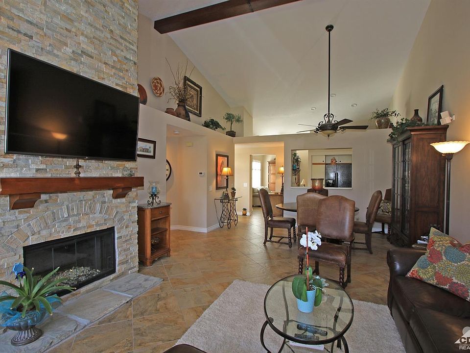 Wonderful opportunity to own a spacious one-bedroom at Desert Falls Country Club. Only 18 of these rare units were built! One bedroom, one bath + powder room, with approx. 1061 SF! Vaulted ceilings, laundry room, large kitchen with nook (could be bonus room/den), gas fireplace, one car garage and much more! Unit has recently been painted, and owner has put in brand new tile! Additional bonus is the added South facing, sunny front patio! Don't miss this one, it will not last!