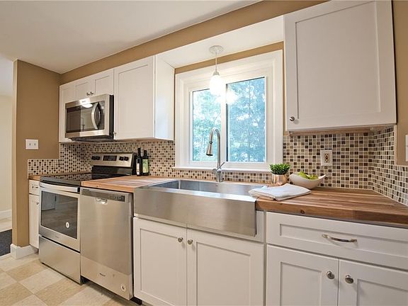 Beautifully RENOVATED Ranch in Cowesett. This home features one level living with an open floor plan. The updates include a New Kitchen: cabinets, beautiful Butcher Block Counter Tops, farmer's sink, Tiled Back Splash, and all new Stainless-Steel Appliances. The new bright Bathroom offers white tiled tub/shower, Marble Top Vanity, lighting fixtures and Retro tile flooring. Bedrooms all have new carpet flooring and light fixtures throughout. The home has been completely painted inside and out and boasts a large laundry area off of the kitchen and a one car garage. The large fenced-in backyard features an oversized deck off the back of the house. All conveniently located close to route 95, Apponaug Village, Marinas, Restaurants, shops and minutes to Downtown Main Street of East Greenwich. Must see to appreciate!
