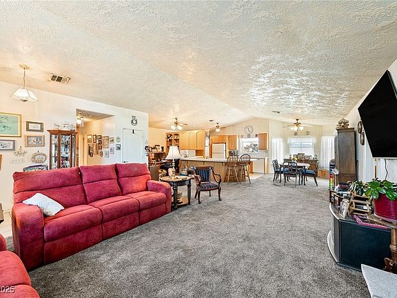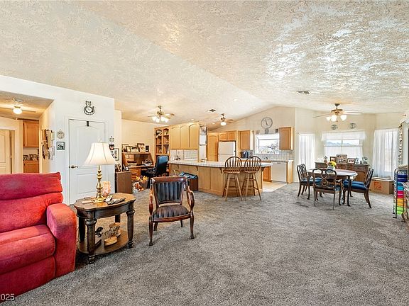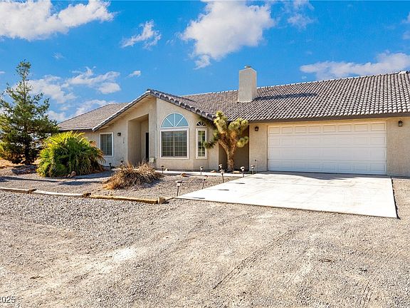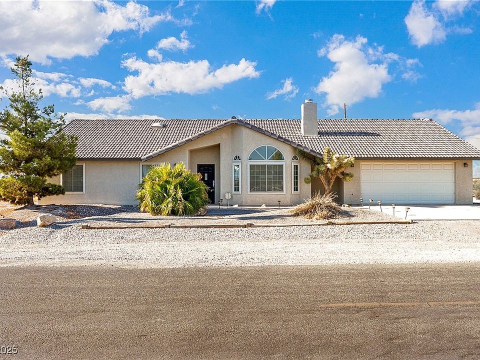 Welcome to this beautifully maintained single-story home in Pahrump! Featuring 3 spacious bedrooms and 2 full bathrooms, perfect for families, first-time buyers, or those looking to downsize. Nestled in a quiet neighborhood, this residence boasts a bright and inviting open living space, thanks to multiple front-facing windows that fill the space with natural light. The open floor plan offers seamless flow between living, dining, and kitchen areas—ideal for entertaining or relaxing. With an oversized two-car garage, and desert-friendly landscaping with drought-tolerant plants for easy upkeep. Enjoy the convenience of a central location near schools, parks, shopping, and dining, with easy access to major roadways. The backyard offers a blank canvas for your outdoor vision—whether it's a garden, additional patios, or a play area for the kids. YOU make it YOURS!