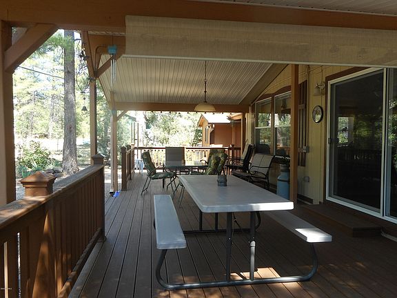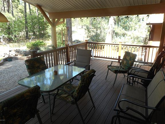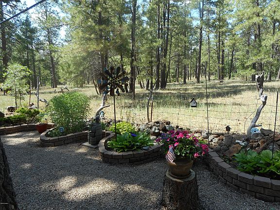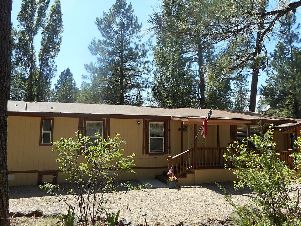 FOREST PROPERTY! THIS GORGEOUS HOME HAS BEEN IMMACULATELY MAINTAINED AND BOASTS A BRAND NEW HUGE COVERED TREX DECK THAT FACES THE NATIONAL FOREST. OVERSIZED WINDOWS ALLOW THE BEAUTY OF THE FOREST TO WAFT THROUGH THE ENTIRE HOME. CATHEDRAL CEILINGS, GREAT ROOM CONCEPT. KITCHEN OPENS TO DINING AND LIVING. MASTER HAS WALK IN CLOSET, OVERSIZED MASTER BATH AND THICK PLUSH CARPETING. VINYL WOOD STYLE FLOORING IN ALL THE MAIN WALKWAY AREAS AND CARPET IN THE OTHER TWO NICE SIZED BEDROOMS. ELECTRIC HEAT. UPGRADED KITCHEN CABINETS AND WHITE ELECTRIC APPLIANCES. SEMI ATTACHED SHED. NEARLY A QUARTER ACRE WITH TONS OF PARKING, ENOUGH SPACE FOR AN RV AS WELL AS AN OVERSIZED GARAGE. ROOM COOLER IN KITCHEN STAYS. PRIVACY GALORE AS YOU STARE AT THE COCONINO NATIONAL FOREST FACING NORTH. JUST BEAUTIFUL!