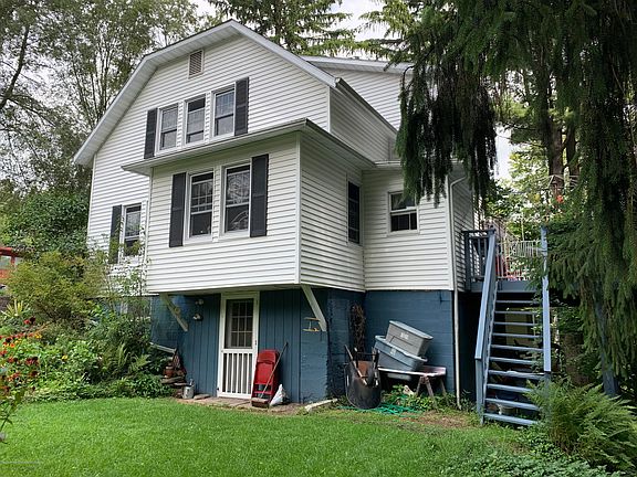 This charming Clarks Green home has the original chestnut trim, hardwood floors and low maintenance landscaping. Also features 4 bedrooms with one on the first floor with its own bathroom, but can be used as a hobby or craft room. Enjoy sunrises from the deck while feeling like your in your own treehouse. Also minutes walk to Manning's and AH football stadium with room to park 4 cars off street. Three year old bright designer kitchen with solid wood and crystal cabinets.