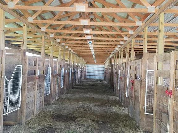 Horse lovers take note, the following is only a partial list of what this 32 acre training/boarding facility has to offer. Listing includes 2 houses on separate and adjoining parcels. One is a 3 bed 2 bath home with all the outbuildings and the other is a 3 bed 2 bath situated on an acre. Outbuildings are as follows...32x110 with 20-10x10 stalls, a 26x48 addition for equipment storage and 4-12x12 stalls, 56x120 with 44-10x10 stalls, 36x60 insulated and heated barn with 8-11x11 stalls with auto waterers and swing out hay feeders. Attached to this barn is a 20x46 heated shop/tack room. 70x70 riding arena with 4-8x8 stalls on one side and 4 9x9 stalls on the other. There's also a 28x66 with 8-8x8 stalls and 8-10x10 stalls. 36x64 storage barn. All barns have water and electric to them. There's 7 different sized paddocks, all with heated/auto waterers. Seller cuts the hay one time a year and averages between 3500 and 4000 square bails each season. All listing info is approx.