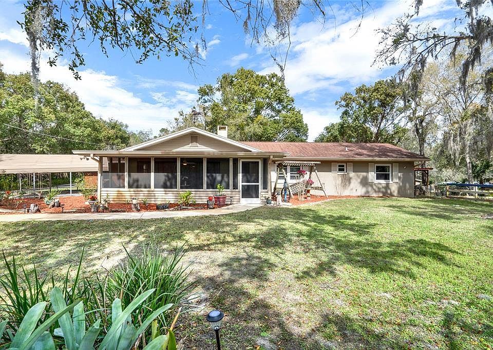 Rare find, 10.2 acre EQUESTRIAN property in the heart of Winter Springs and *NO HOA*! This horse lovers dream is a beautiful 4-bedroom, 3-bathroom ranch style home and is ready for a new owner. Electric gate welcomes you onto your tranquil property. To your right is a wood planked round pen followed by a large 60 by 20 meters irrigated arena. There are a total of 12 gated fenced fields. Your paved driveway continues past the home and offers covered parking at the end for six vehicles, including your RV equipped with 220 amp power outlet. Picturesque views and mature landscaping welcome you into this single-story home. Large screen front porch brings the outside in. Front door leads you into an open floor plan with wood plank tile flooring throughout the home. Large family room with a tile accent wall that is complete with a wood burning fireplace. The kitchen is completely remodeled with soft close cabinetry, quartz countertops, and a huge breakfast bar that overlooks the family room. The kitchen features a large pass-through space to service the dining room with built-in cabinetry and sunroom that spans most of the back of the home. There is a laundry/mud room combo, and full bathroom that is accessible from the outside of the home for easy cleanup prior to entering the residence. To the right-hand side of the family room there's a hallway featuring 2 spacious bedrooms and another fully remodeled bathroom. All bathrooms have been updated with new fixtures, tile, and glass frameless showers. Large cedar barn with stone paver aisleway is complete with power and bright lighting throughout. Nine horse stalls with individual built-in hay mangers of which seven include covered paddocks. There are two wash stalls with power and water, a feed room, an air-conditioned tack room with saddle racks and storage space. 4.5 acres of fields are irrigated by a new deep well that was installed in 2023. Note: home has city water. Spacious workshop has power/water and a second feed room attached to the rear of the building. There is an additional 12 X 12 foot powered cedar building to the left of the home that could be a great home office space or enclosed storage. Property comes with an additional 6 acres of utility easement in the rear that allows you to pasture animals, plant fruit trees, or host events.