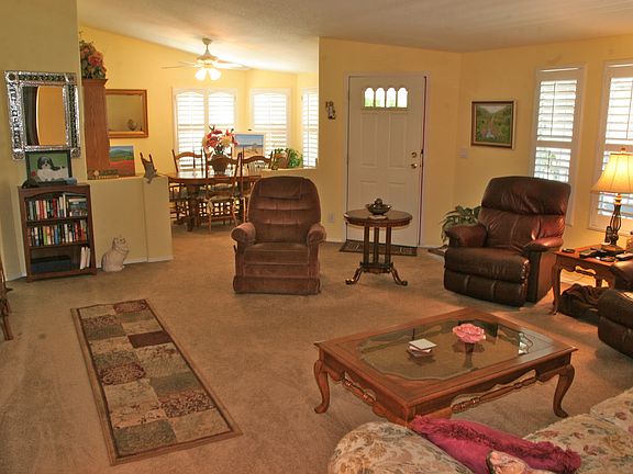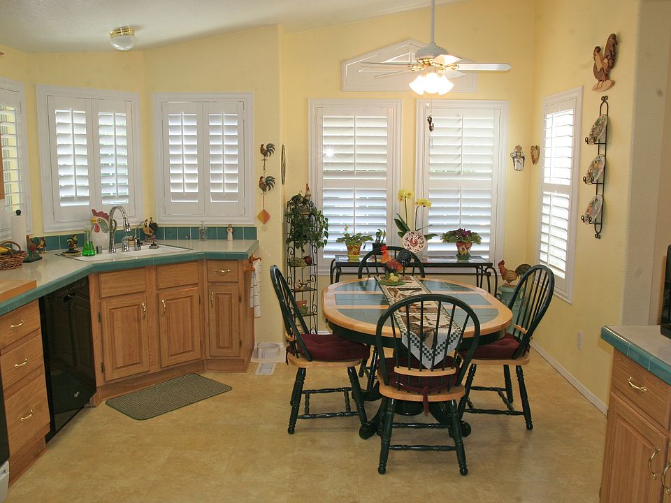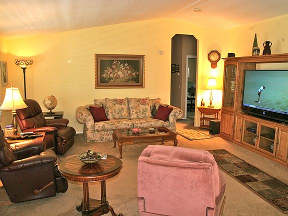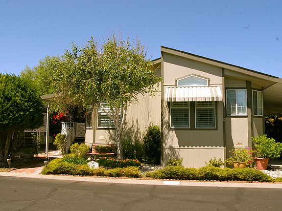 This beautiful bright home in the all age Family Park, Eldorado Mobile Estates Park, has a wide open floor plan, vaulted ceilings, large country kitchen, dining room, extra large master bedroom, 2 full bathrooms with his and her sinks in roomy master bathroom, walk-in closet, large utility room for washer and dryer and extra fridge. Guest bedroom and bathroom located off L shape hallway. Also double pane windows with plantation shutters and lots of cupboards throughout the home. The large covered patio and porch and lush private fenced backyard complete with matching shed is ideal for small children or dog. Garden tub with separate stall shower. Retrofitted for earthquakes and has R 11- R25 insulation and carport capable of parking 3 cars. Build in 1999 this home is move in ready. Come see for yourself. The El Dorado MHP is a family park and has a community pool with spa, clubhouse and recreational facilities. Brokered And Advertised By: Troop Real Estate Listing Agent: Rob Van Haaren