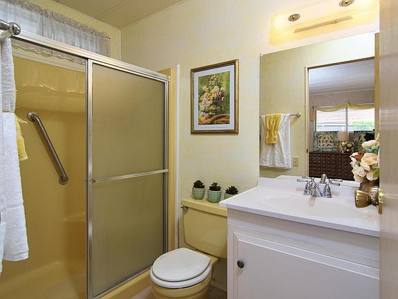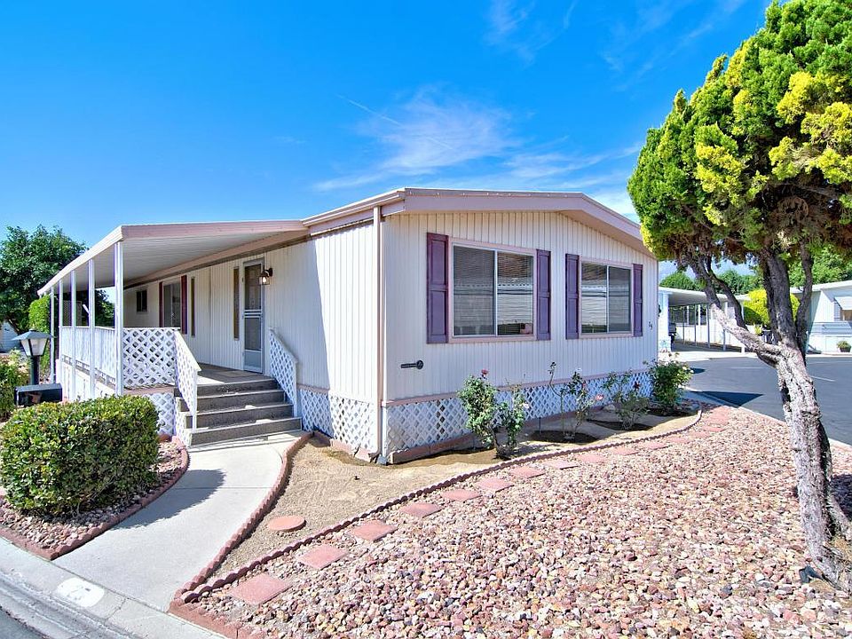 Nice and bright, spacious double wide modular home. True pride of ownership is evident throughout. The open floor plan has ample living space and good size bedrooms. Kitchen is cheery and clean. Truly a must see to appreciate! This can be a wonderful and affordable ''forever home'' or starter home as the park is now family friendly. Stylish white washed paneling throughout. Lots of windows bring in much natural light. Enjoy the gorgeous views of rolling hills from the deck and much more! Great community amenities such as a pool, spa, clubhouse, kiddie park, RV parking, and more. (professional photos to follow)