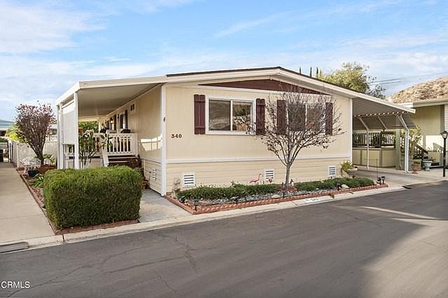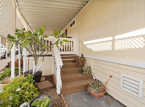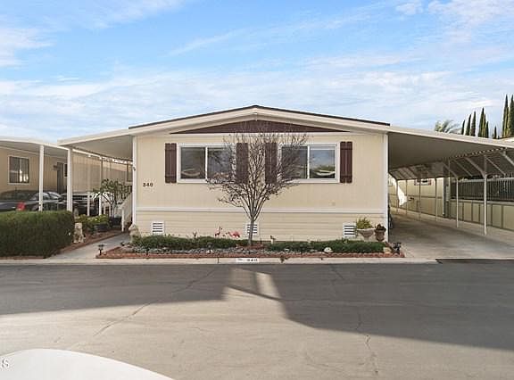 Move in ready updated home located in El Dorado MHP which is a family park. Home features newer laminate flooring throughout updated kitchen with stainless steel appliances and newer counter tops, vaulted ceilings, newer 30 year roof aprox 2 years old, air condition/heating unit replaced aprox 5 years ago. Other features include crown molding built in hutch w/lighting and newer windows. Spacious rear yard with grass area and orange tree. Be sure to put this home on your list as it a nice property located right across from visitor parking lot