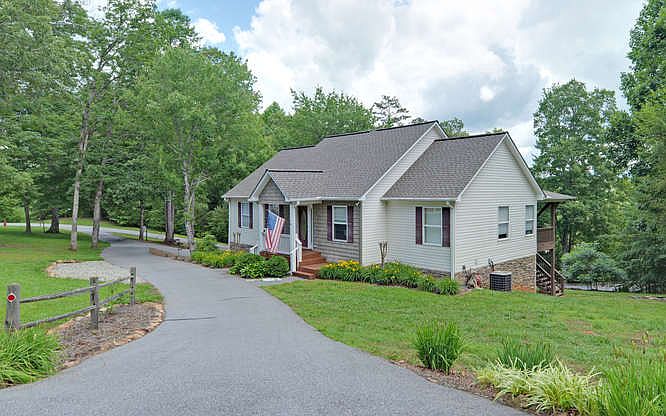 Lake Access Beauty. This home offers a wonderful open floor plan with lots of doors and windows to let nature in. High Cathedral ceilings grace the Great Room and Master Suite. Granite counter tops in kitchen, Large closets, Laundry room on the main floor. Covered viewing porches with large sliding doors. Finished lower level offers a drive under, over-sized garage, Ample workshop area and storage, BIG den with showcase shelves, BR and BA. Low maintenance vinyl siding and stone on the exterior. Storage shed and Boat Parking too. Circular drive, landscaped yard and fire pit. Private boat ramp for residents.