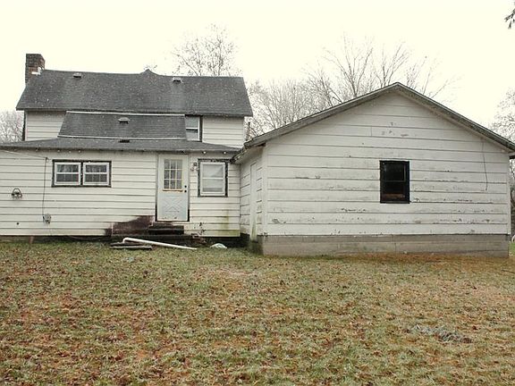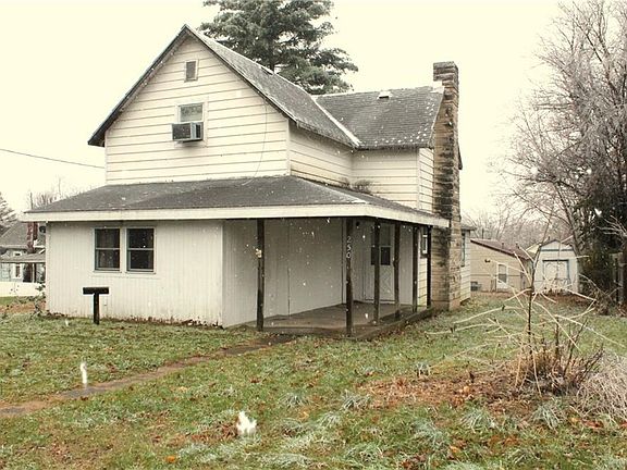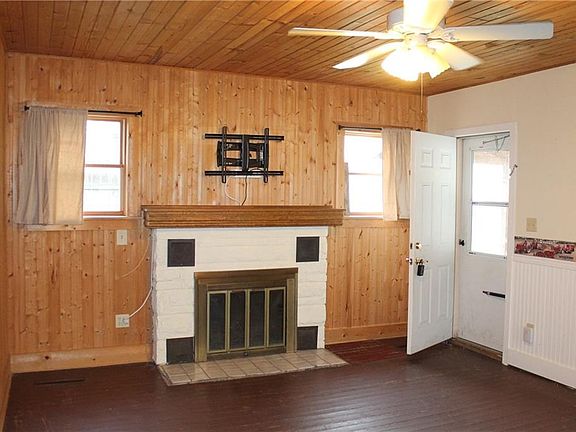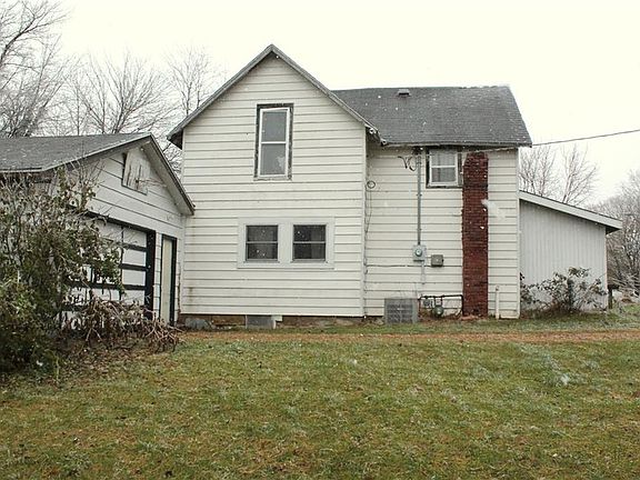 Small town living. Plenty of potential as your Forever home or an investor looking for rental income. Large living area with what looks like original wood floors, stone wood burning fireplace (condition unknown), enclosed built-in shelves, wood ceiling, 2 ceiling fans. Kitchen appliances include electric oven/range and refrigerator. Laundry (washer & dryer) conveniently located in the full bath. Main floor bedroom has large closet/storage area plus bonus room. Upstairs has 3 rooms which could be used as bedrooms, office space, play rooms... Attached garage (24'x20) has extra room for workshop space as well as storage space above. Shed in the back, partially fenced yard.