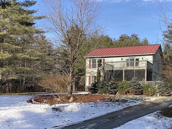 Contemporary Castleton property with desirable southern exposure is just three miles from the lovely village of Castleton, home to Vermont State University. This 4 bedroom/3 bath house offers a great floor plan with open kitchen/dining area, 1st floor bedroom, 1st floor 3/4 bathroom with laundry, and fantastic screened-in porch right off living room. Second level features two additional bedrooms and impressive primary bedroom suite which includes its own private deck, huge full bathroom and spacious walk-in closet. Hardwood flooring throughout main level, standing seam roof, stainless steel appliances, central vac, gas stove, beautiful landscaping, and enclosed back yard just add to this home's allure. Property to be conveyed with all furnishings.