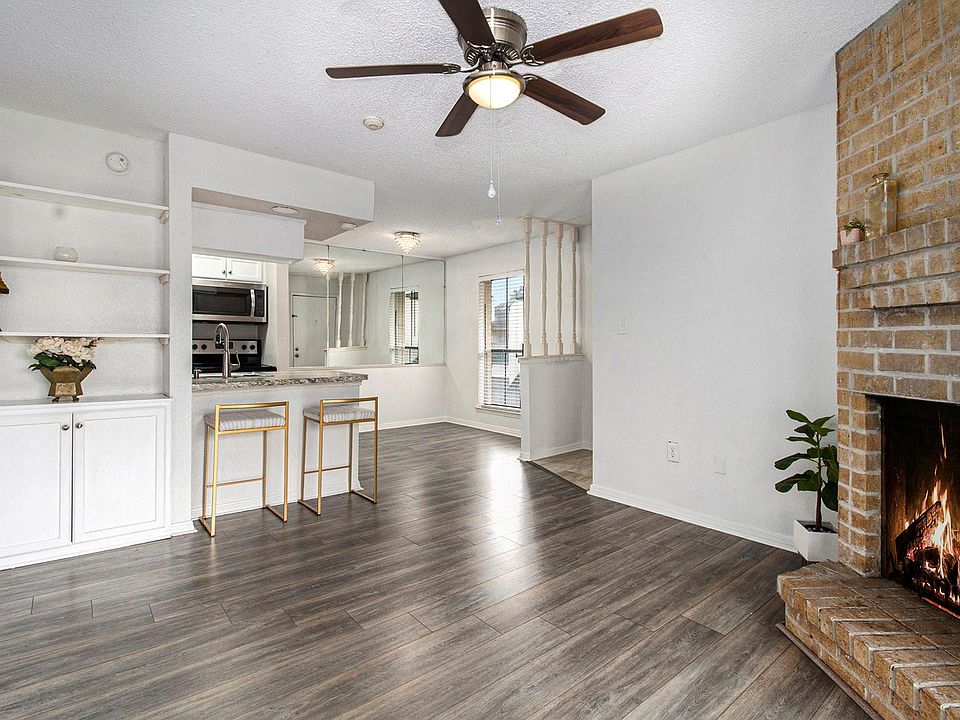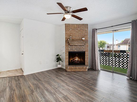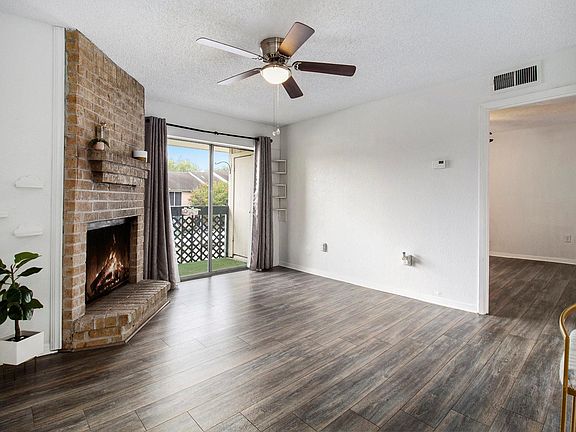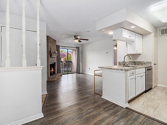 This beautifully updated unit offers charm and convenience! It's located right next to the pool on the corner, so no neighbors on one side! It's just minutes away from shopping, food and entertainment! The unit features stainless steel appliances, beautiful wood laminate flooring and a stunning floor to ceiling brick fireplace for those cozy nights. Step outside and enjoy the fresh air on your balcony with a touch of privacy added with the lattice. The community not only offers a pool but a tennis courts and a fitness room as well! Another added convenience is the unit comes with an assigned covered parking space and additional guest parking! Come and see this beauty in person!