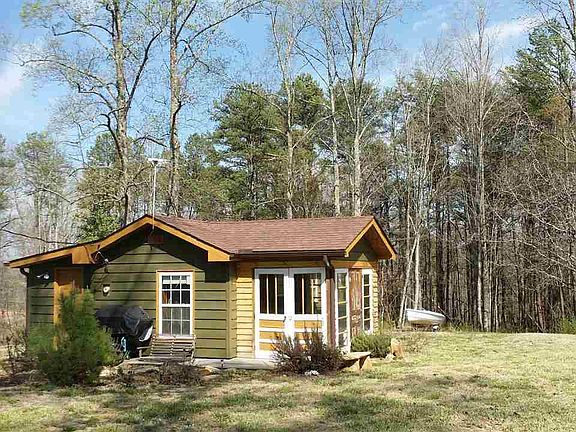 This 'Artist's Hideaway' is surrounded by nature. Natural light bathes the front porch and has plenty of room for relaxing with a book, sitting in quiet meditation or just taking a nap. The cabin has a full bath, a nook kitchen with corian countertops and new appliances. The cozy living room/ dining room will welcome you at the end of the day. The front porch is enclosed using vintage doors for character. They can be opened for ventilation. Outside the front door is a lovely garden which includes aromatic herbs. Behind the house are several maturing blueberry bushes. Situated on 8.5+ acres with huge, old oak trees with the underbrush removed, it's a great place to watch kids play or just to sit. There is a detached storage garage and even an underground bunker!!! If you're looking for a weekend getaway convenient to hiking, river rafting, mountain stream fishing or a day on Lake Keowee.... this just might be the place. Priced to sell, don't miss a visit for yourself.