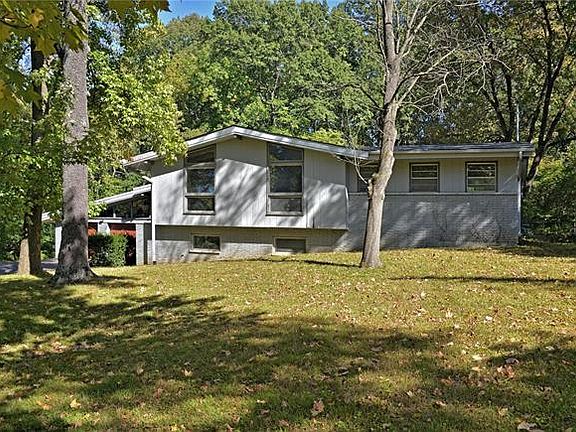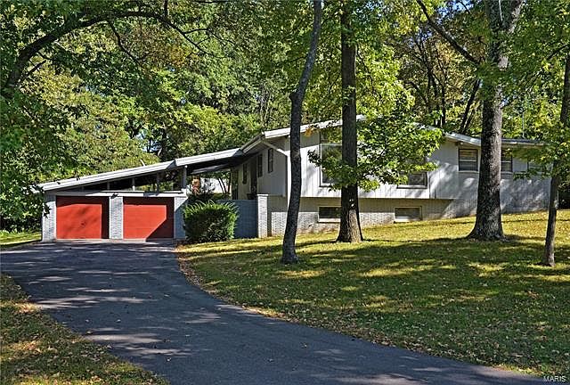 Here is your opportunity to live in a prime close in location. This spacious contemporary ranch is nestled on an acre plus wooded lot in Ladue schools. Ceramic tile floors enhance the entry foyer all the way thru to the sun room. Soaring vaulted/ beamed ceilings and wood flooring span the main floor. Stainless steel appliances, granite counter tops, ceramic tile floors and a brick accent wall highlight the kitchen. The light and airy living room and dining room combination features a floor to ceiling gas fireplace. The master bedroom with a full bath opens on to the bonus room which can serve as sitting room or a home office. Two bedrooms and a full bath with a double bowl vanity complete this floor. The inviting lower level has a spacious family room with a wood burning fireplace, a full bath and a flex room that can be a fourth bedroom with a cedar closet or a home office. There is an access door to the front of the house off this room.This unique property is ready to be enjoyed!