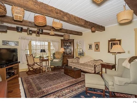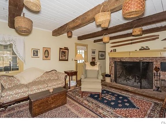 Meticulously maintained 5 bedroom, 4 full bath, 18th century antique colonial, , blends rustic charm with modern conveniences. The sun-lit kitchen boasts exposed original beams with stainless steel appliances and granite countertops. Large fireplace in living room as well as wide planked hardwood flooringthroughout home is in keeping with its charm. Large dining room perfect for entertaining or candlelit dinners with an additional fireplace. The library includes a wet bar,enclosed storage and built in bookcases. The third floor is perfect for office space, workout area or kids playroom. Screened in porch overlooks the multiple gardens! Come unwind on either the lower or second story deck canvassing amazing views of the property.