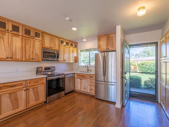 Move-in ready updated one-bedroom, one-bath unit in Hacienda Carmel. Step into a refreshed interior and enjoy your private patio, perfect for gardening or unwinding in the sun. This vibrant community offers easy access to scenic walking and hiking trails, plus fantastic amenities like a fitness room, pool, and various activities for a dynamic lifestyle.