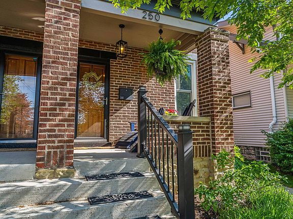 1920s Brick End Unit condo in Merion Park, overlooking Moeller Park! 2 bedrooms, 1 full bath and over 1076 sqft + full bsmt, private fenced patio & 1 car detached garage! Covered Front Porch! Original Hardwood Floors! Living Room w/fireplace. Dining Rm w/2nd fireplace. NEW Kitchen w/soft close cabinetry, quartz countertops, fish scale tile backsplash, SS Appliances, incl. vent hood & Samsung Smart Oven! Curved staircase to 2nd floor. Primary overlooks park! Exposed brick in Updated Bath w/deep tub & herringbone tile! Full Bsmt w/washer & dryer & hand sink. Storage cabinetry and workout area plus storage! Private Patio w/Pete the Pistachio Tree, Clev. Pear Tree, Allium, Lilac & more! Oversized 1 car detached garage! Ecobee Thermostat. NEW Windows in 2021! Walkable Area! Absolutely stunning