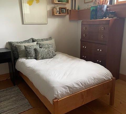 Beautiful FULLY FURNISHED Studio Apartment for Rent Utilities Included! -$950/month (includes laundry, heat, electric, high-speed internet, plowing, mowing) -available 01 March 2023 -three-to-six month rental Private entrance, immaculately clean and sunny* (*with room darkening blinds) south-facing studio apartment in newer home (studio apartment is one large room with adjoining bathroom and closet; approximately 300 s.f.) Eureopean radiator heat, electric, high-speed wireless internet, one parking space, mowing, and plowing INCLUDED! One of four private apartments in immaculate newer house on very quiet dead-end road, yet near to interstate 89. Seven acres of woods, meadow, gardens, adjacent to acres of hiking and x/c ski trails. Pine floor (tile in bathroom), white walls, open floor plan (studio: one large room with bathroom and closet), private porch. Newer apartment-size electric stove and refrigerator; storage areas are negotiable. Pine floor (tile floor in bathroom), white walls, open floor plan, private porch. FULLY FURNISHED with single bed; desk and chair; leather lounge chair; Aemes lounge chair; two side tables; end table; chest of drawers; large wall mirror; electric range, refrigerator, microwave, and table and chair in kitchen; Bosch laundry (washer). Equipped kitchen with range, refrigerator, microwave; linens and towels provided. Three to six month lease, No smoking, no vaping, no drugs. No pets. Fully furnished including linens and towels. Cleaning Fee ($200).