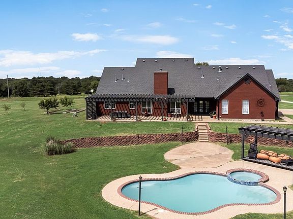 Escape to your own private paradise on 11.64 unrestricted acres with this beautifully renovated 4-bedroom, 2.5-bath home, where luxury, comfort, and wide-open freedom come together in one extraordinary package. With no HOA or restrictions, this property gives you the flexibility to live exactly how you want. From the moment you arrive, the deep covered front porch welcomes you, offering a peaceful spot to take in the tranquil landscape. The open floor plan makes entertaining easy, with an expansive great room that connects to both formal and informal dining areas. At the heart of it all, the kitchen is a chef’s dream with top-of-the-line ZLine appliances, elegant quartz countertops, and a beautifully tiled backsplash. The spacious primary suite is filled with natural light and offering private access to the back patio, and the ensuite bath feels like a spa with its double sinks, stand-alone vanity, oversized walk-in glass shower, and luxurious soaking tub. In a split floorplan, 3 more bedrooms make it easy to host friends and family. Step outside to your own backyard oasis, where a sparkling gunite in-ground pool and spa invite you to relax and unwind. Host unforgettable gatherings under the pergola-covered back patio or follow the stone walkway to a second pergola-shaded seating area—ideal for summer BBQs, evening cocktails, or morning coffee with a view. The land is wide open and ready for whatever your dreams may be. Build a workshop, raise animals, start a garden, or simply enjoy the peace and natural beauty. A 3-car oversized garage with room for a second freezer or a small hobby space. Property has a 50 amp RV hookup with a gravel parking pad that is accessible for recreational toys. The stock tank that attracts local wildlife add even more to love. Whether you’re craving room to roam, a place to entertain, or the freedom to live without limits, this one-of-a-kind Central Texas property delivers it all.