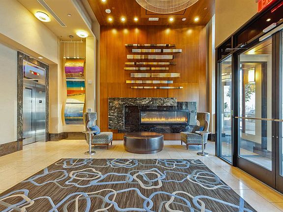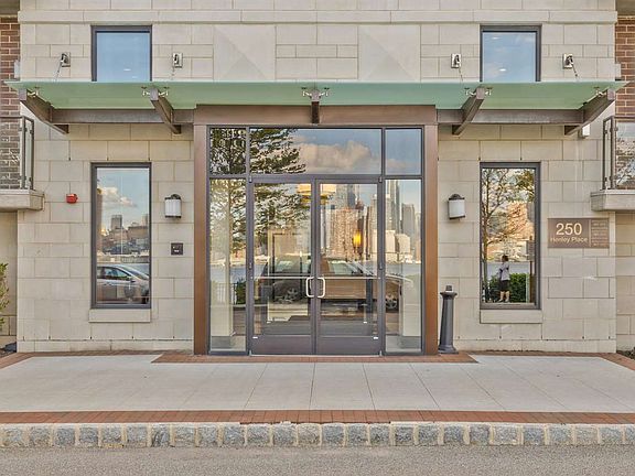 Manhattan Skyline Views facing South, Downtown to NYC Harbor, from every room of this amazing 1,557 sf waterfront condo. Featuring gas fireplace,ceiling soffits & moldings, recessed lighting, adorned with soft neutral tone walls, beautiful hardwood wood floors throughout. Master spa w/creamy marble, double vanity, large soaking tub, frameless enclosed shower. Gourmet Chef kitchen w/ walnut stain cabinetry, marble counters, Kitchen Aid S/S Professional appliances, garbage disposal, halogen over the counter lighting, soft close drawers, pantry closet. Large Capacity Whirlpool washer dryer in unit, Central gas heating/ cooling. Includes 2 in building garage spaces + BONUS 8x4 STORAGE UNIT. Full service virtual concierge, 2 story grand salon, state of the art gym, outdoor pool. NY Waterway shuttle on site to ferry/Hudson Light Rail to Path. NJ bus to GWB or Lincoln Tunnel. Minutes to NYC! Pets OK
