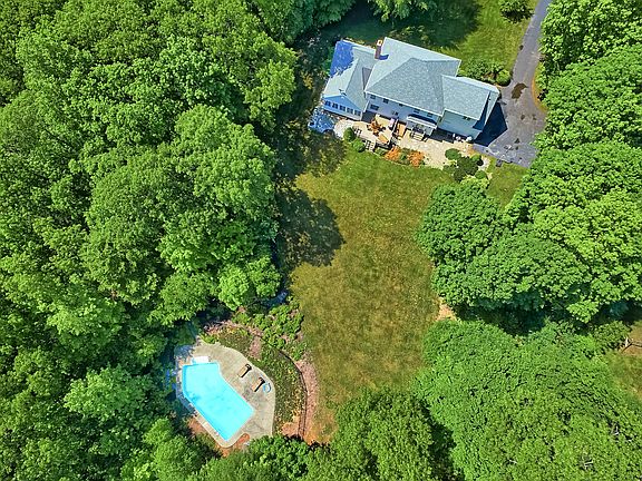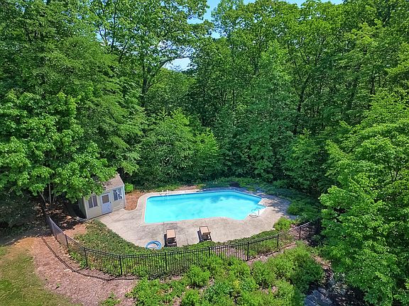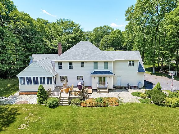Stately 4BR Georgian Colonial beautifully set on 1.84 LEVEL acres with IN-GROUND POOL, 3 Season sunroom; shed, stone walls! Highlights include formal living room and dining room with hardwood floors, crown molding and wainscoting; expansive kitchen with center island breakfast bar with Silestone counters and eating area with access to the fabulous 3 season SUNROOM loaded with windows, vaulted ceiling and access to deck! The spacious family room features vaulted ceiling, floor to ceiling brick fireplace, built-in bookcase and access to the sunroom as well. Also, a main floor office with hardwood floors and sliders to yard; and mudroom! Second floor boasts master bedroom with tray ceiling and full bath w/double sink vanity, whirlpool and separate shower; three additional bedrooms. Deck overlooks picturesque **LEVEL** yard, **IN-GROUND POOL** w/fenced area.