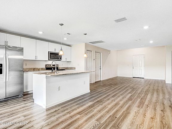 Located In The Highly Sought After Area Of Northwest Palm Bay And Only Minutes To The New Heritage Parkway Is This 2021 Built Concrete Block 4 Bedroom 2 Bath 2 Car Garage Canal Front Home. Upgraded Items Include A Designer Inspired Kitchen With White Cabinetry & Soft Close Drawers, Stainless Steel Appliances And Granite Countertops. Other Key Features Include: Recessed And Pendant Lighting, Ceiling Fans, Water Treatment System, Laminate Flooring Throughout, Garage Door Opener, Double Sink In Master Bath Along With Tiled Walk In Shower. Guest Bath Offers Granite Countertops And Tiled Shower. Be Sure To Check Out The Video Located On The Photos Tab.