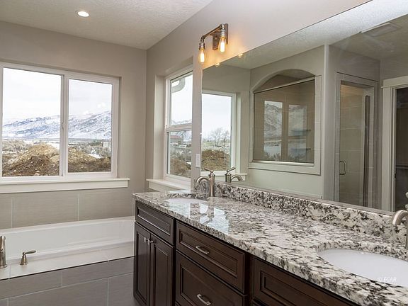 Gorgeous location on Holyoke Drive with unobstructed gorgeous views from the back of the Ruby Mountains. This upgraded home has it all, making this your home your forever home! Split bedroom floor plan, three bedrooms on one side or make one into a home office. Enlarged master suite has coffered ceilings, attached bathroom with seperate shower, jetted tub, dual sinks and walk in closet. This kitchen is massive and ready to entertain! Picture windows out the back dining and living area which lead to the covered patio. No need for a shop as an attached 1,300 sf insulated garage has room for all! Agent is owner of home. Some pictures of another home of same model.