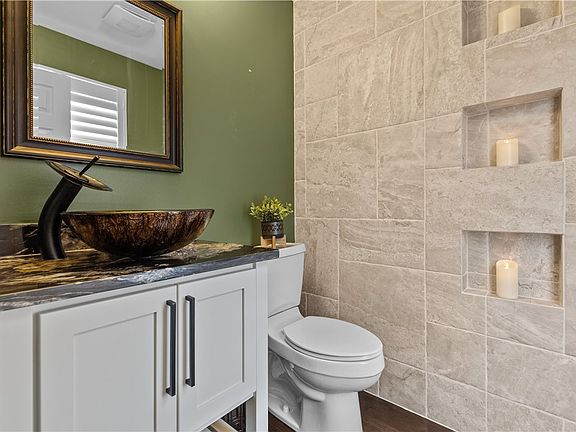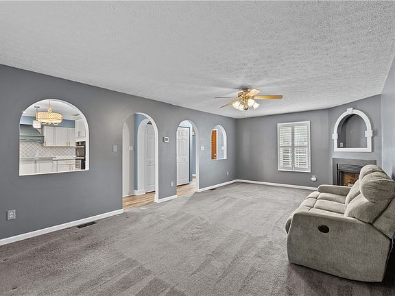 Newly updated, with LVP flooring from the foyer into the kitchen. Large living room/dining room combo with cozy gas fireplace. New 1/2 bath with hand-scraped hardwood floor, decorative tile wall, granite top and waterfall faucet in 2022. Gourmet kitchen includes soft close cabinets and drawers, glass cabinet doors, quartz top, ceramic back splash, built in pantry, vented industrial range hood, built in Jennair ovens, and dishwasher. Access to the rear deck and gazebo from the kitchen. Spacious owner’s bedroom and bath with granite vanity and shower. Two additional bedrooms with plenty of closet space and ceiling fans. Hall bath remodeled in 2022 includes granite vanity and ceramic floor and tub/shower surround. Roomy basement with ceramic entry from garage and plenty of storage. Additional bonuses include: New roof 2020, New windows and slider door 2021, new hot water heater in 2023, Plantation shutters included and installed in 2021. Newer HVAC 2017. This home truly has it all!!
