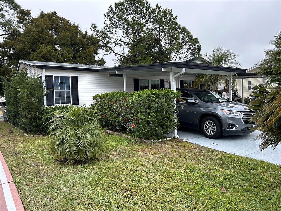 Park East is an age 55+ Resident Owned Cooperative (Co-op) Community. The price of the home includes 1 share of the community ownership valued at $56,400). When you are a shareholder there is no lot rent to pay. The HOA fee for this property is $254.00 every month which includes Lawn Cutting and Edging, DIRECTV STREAM Cable and Frontier Fiber Optic High Speed WIFI. The clubhouse features an exercise room, library, billiard room and large hall with full kitchen (available to rent for private parties) where loads of community activities take place including Bingo half the year on Thursday nights and community holiday parties. Golf carts ok in community to drive on roads. Come live in this well sought after community and also enjoy the beautiful picturesque lakefront with 2 boat docks and picnic area. Executive public 9 hole golf course surrounds this beautiful community. Incredible picturesque lakefront with picnic area ,bbq's and firepit private boat ramp docks and fishing pier. Pool area with lounges, heated pool with relaxing spa. 15 minutes to Disney property. Make this well very maintained property yours. 3 BEDROOMS 2 BATHS RIGHT ON THE GOLF COURSE OVERLOOKING A MAGNIFICENT VIEW OF THE 8TH HOLE GREEN! HOME FEATURES A DINETTE FOR EVERYDAY DINING AND A FORMAL DINING ROOM FOR LARGER GATHERINGS. MANY UPGRADES INCLUDING A NEW ROOF IN 2024 AND NEW CENTRAL AIR CONDITIONING UNIT IN 2021 UPDATED MASTER BATH WITH LARGE VANITY AREA AND TILED SHOWER STALL IN 2016. MOST WALLS REDONE WITH TEXTURED PAINT ADD TO THE OVERALL CLASSY FEEL OF THIS HOME. UPGRADED VINYL FLOORING AND LAMINATE FLOORS IN LIVING ROOM DINETTE DINING ROOM KITCHEN AND BATHS. LIVING ROOM WITH SLIDING GLASS DOOORS TO A COMFORTABLE LANAI WITH THE STUNNING VIEW OF THE 8TH GREEN. HOME JUST PASSED A 4 POINT INSPECTION.