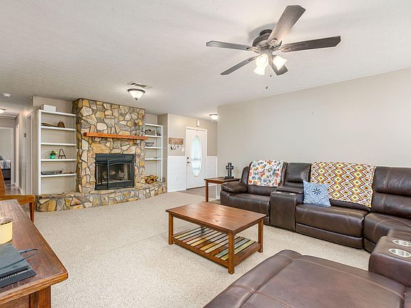 - Ceiling Fan(s), 8' +, Walk-In Closet(s), Fireplace, High Ceilings, Kitchen Island
