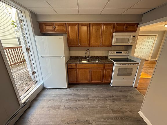 Freshly painted unit with new stove and fully applianced kitchen and private deck. Hardwood floors thruout. Owner pays for cold and hot water and gas for heating. Tenant jjust pays for electricity.
