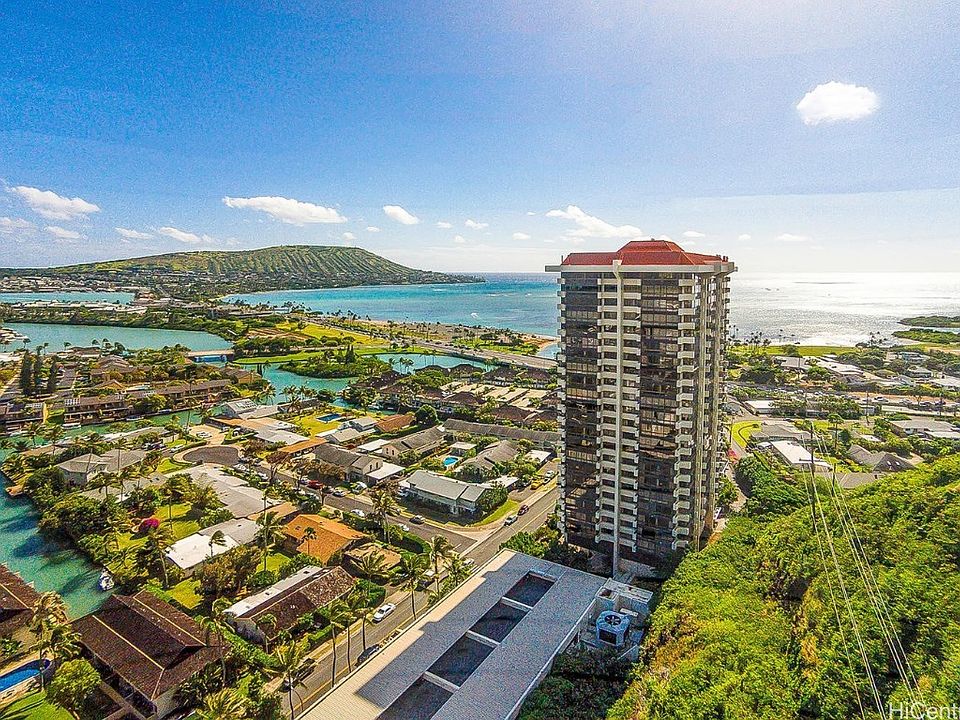 This highly desirable, most preferred corner-end and spacious 1,644 living sqft, 2BR/2BA condo suite has recently upgraded floor-to-ceiling windows offering unobstructed beautiful views of the coastline, Hawaii Kai marina, Koko Head Crater, valley, Maunalua Bay, and ocean. Located on the cooler east side of the bldg, it offers the natural morning sun light and remains cool in the afternoons. It features double entry doors, central AC, wood floors, built-in cabinets includes a separate storage locker and two spacious parking stalls. Mt. Terrace is a premier landmark residential high-rise, secured, quiet resort atmosphere with extensive amenities include meeting/party room, BBQ areas, exercise room, sauna, racquetball court, heated pool and jacuzzi, beautiful garden with walk path, door person services and located in short distances to many essentials of the desirable Hawaii Kai neighborhood. VA approved bldg. Maintenance fee includes AC central, cable TV, (hot) water, sewer, reserves and common area expenses.