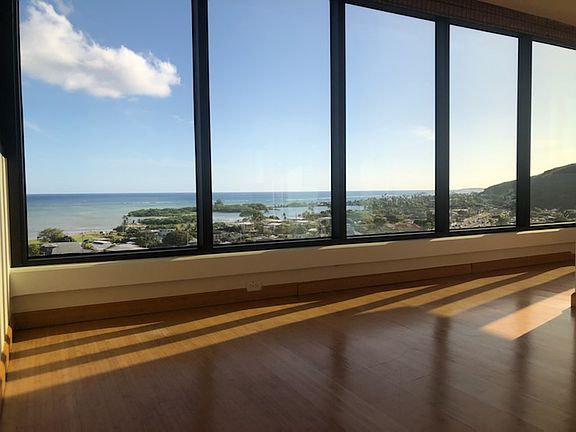 Available Now! Resort-like living does exist at a great price! $3900 + tax /month for rent for a one-year renewable lease or $4050/month for rent + tax for a 6-month renewable lease (utilities include a/c cooling, basic cable, trash, hot water, sewer, and 2 covered parking stalls). This spectacular, bright, and very large preferred corner unit has panoramic ocean and mountain views from the Mt. Terrace building in Hawaii Kai. Bamboo flooring, central AC and remote control blinds on the floor to ceiling windows create a nice atmosphere to enjoy. This is an extra-large two-bedroom, two-bath unit with 1,644 sqft and two covered parking stalls. Check out these amenities: 24-hour doorman, heated pool, exercise room, sauna for each men and women, racquetball court, recreation/party room, walking paths, and two barbecue areas for residents to enjoy. There is also secure storage for bulky items. Washer and dryer are in the unit. No Pets, and No Smoking. Listed by At Home Hawaii Real Estate Sales & Property Management, 1750 Kalakaua Ave. #2108 Honolulu HI 96826, RB-20583