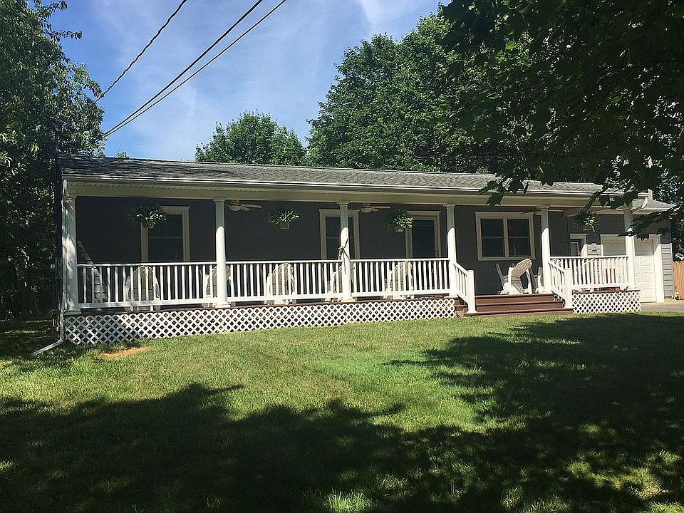 3 bedroom ranch with a full size front porch and an attached garage set back 100 feet off the road with an over 200 foot backyard and 3/4 of a mile down to the sound beach.