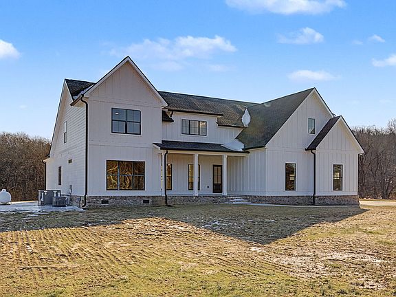 Your slice of country paradise awaits. Welcome to the home and setting you’ve been waiting for an exceptional modern farmhouse situated on just over 7 acres, bordered by a picturesque, flowing creek. The combination of stunning land and thoughtfully designed living spaces creates a truly magical retreat. Step inside to soaring ceilings accented with wood beams, rich hardwood floors, and a striking brick fireplace anchoring the open concept main living area. The layout seamlessly connects the formal dining room, chef’s eat in kitchen, and spacious family room perfect for both everyday living and entertaining. On one side of the home, you’ll find an oversized bedroom and a full bathroom, ideal for guests or multi-generational living. On the opposite side of the fireplace, the luxurious primary suite offers a private escape with designer appointed finishes and refined details. The kitchen is a standout, featuring a large island, propane cooktop, and an impressive walk in pantry. A generous laundry room and convenient drop zone just off the garage complete the main level. Upstairs, enjoy a large bonus room, two spacious bedrooms, and a well-sized bathroom. A substantial walk in attic provides excellent storage or the opportunity to finish additional space for a home office or flex room. The builder spared no expense, incorporating premium upgrades throughout. The home is supplied by well water with a full filtration system, and a propane tank services the tankless water heater, range, fireplace, and heating system. This is a rare opportunity to own a peaceful country retreat without sacrificing quality or comfort. Schedule your private showing today, it’s time to make this slice of country heaven your own.