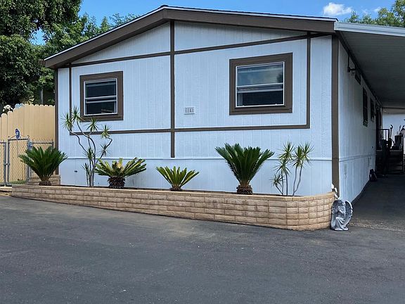 Lovely, quiet, very peaceful family park with only 18 homes. Excellent area surrounded by million-dollar homes. Low, low, low family park rent of only $775/mo. Wonderful private floorplan with MBR Suite at one end and other bedrooms at the other end. Open common area with family kitchen, formal dining area and large living room. Dual-pane windows, architectural composition shingle roof. Water heater, stove, heating, all gas. 2-car tandem carport. Corner lot with views. This is a great area, great park, low rent, a piece of serenity just minutes away from El Cajon shopping, schools, and services. Large, covered patio with 2 additional porches great for entertaining and family get togethers.